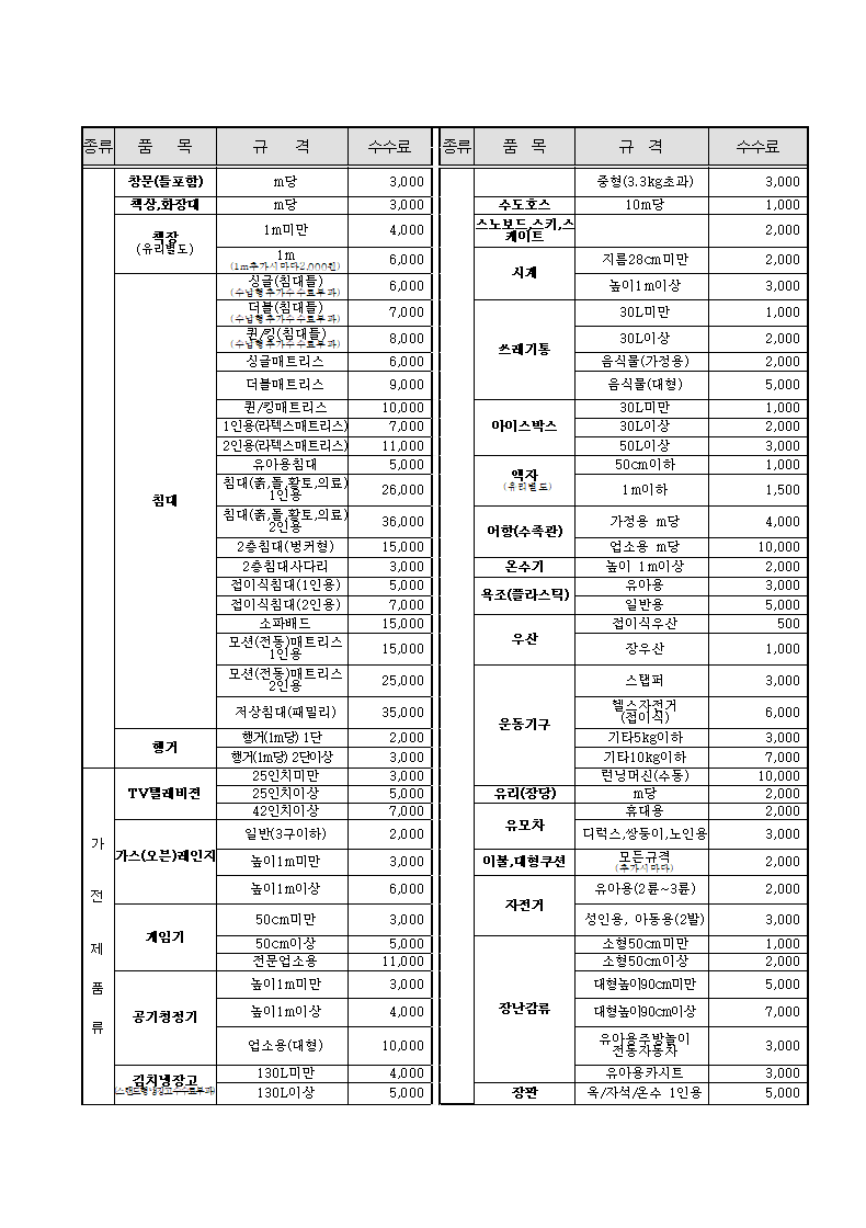 강동구 대형폐기물 배출 수수료는 아래와 같습니다.