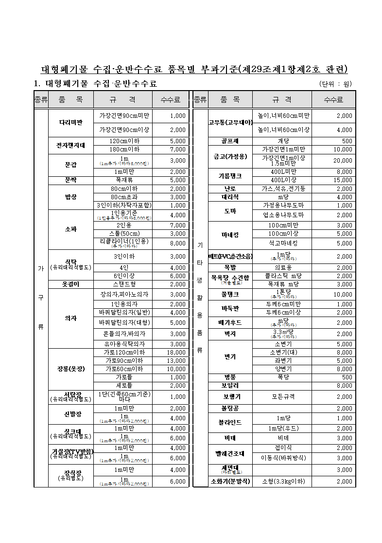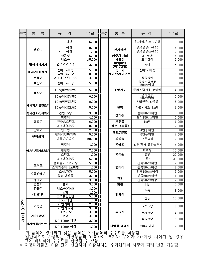 대형폐기물 배출 수수료