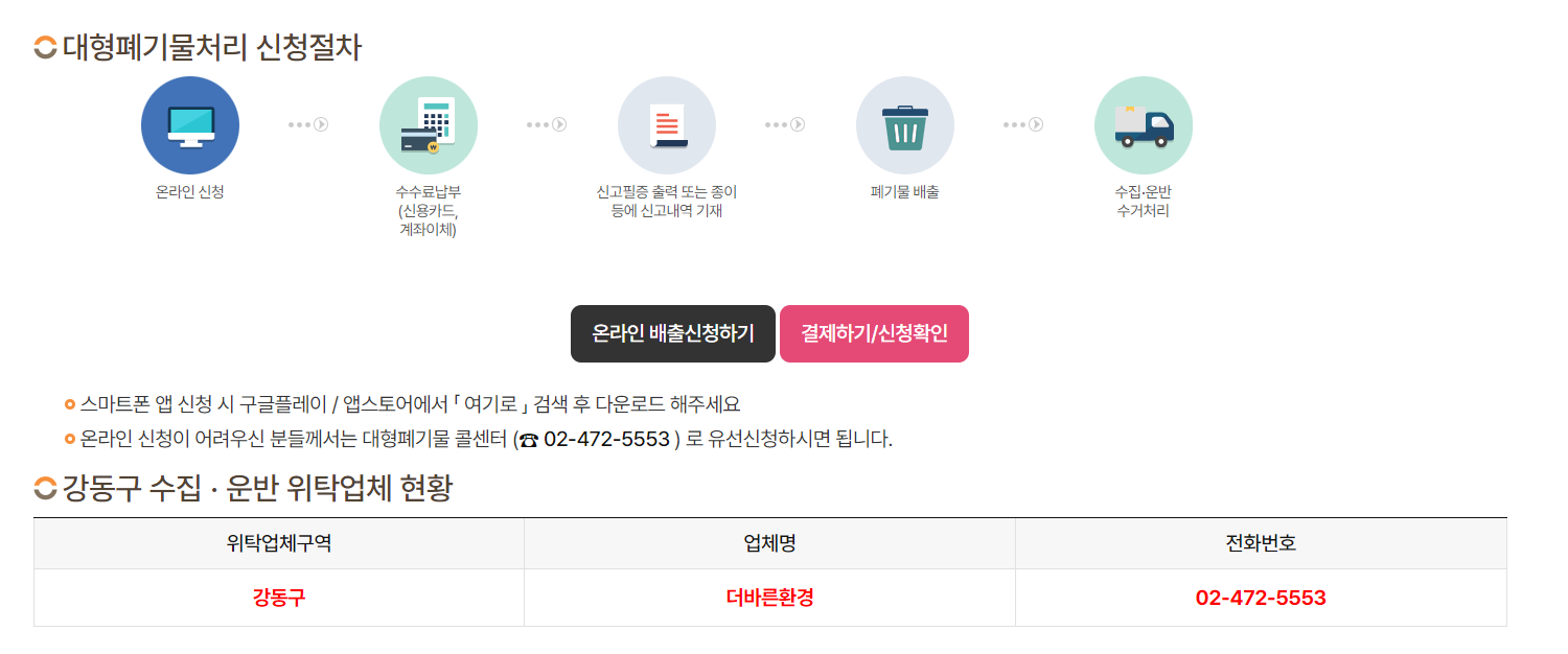 강동구 대형폐기물 온라인 신고방법
