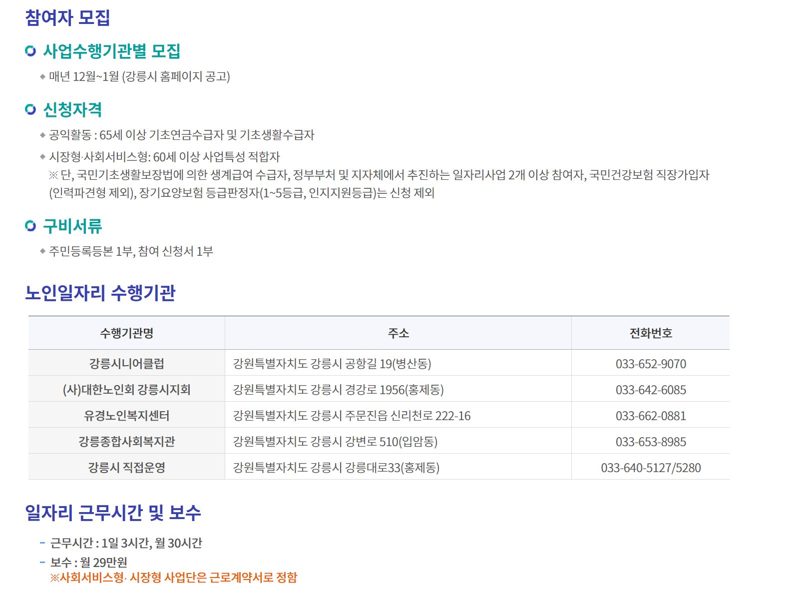 바로 지원가능한 강릉시 노인일자리 구인구직 일자리 정보만 모아봤습니다.