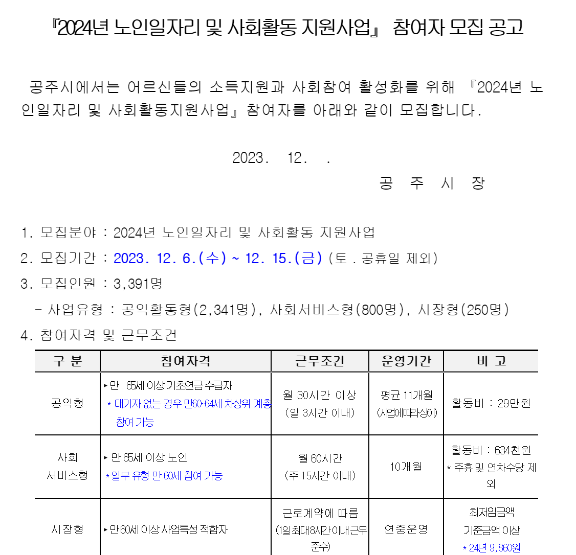 대표적으로 어르신 일자리 사업이 있는데요, 참여하기 위해선 신청기간,대상자 등의 조건이 있으니