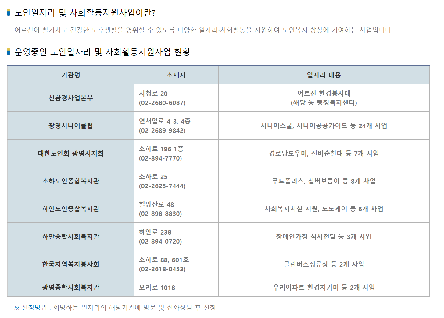 바로 지원가능한 광명시 노인일자리 구인구직 일자리 정보만 모아봤습니다.