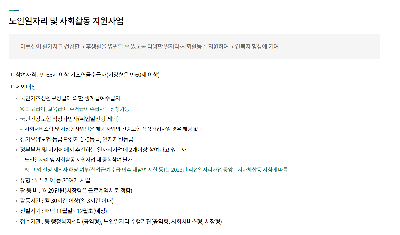 대표적으로 어르신 일자리 사업이 있는데요, 참여하기 위해선 신청기간,대상자 등의 조건이 있으니