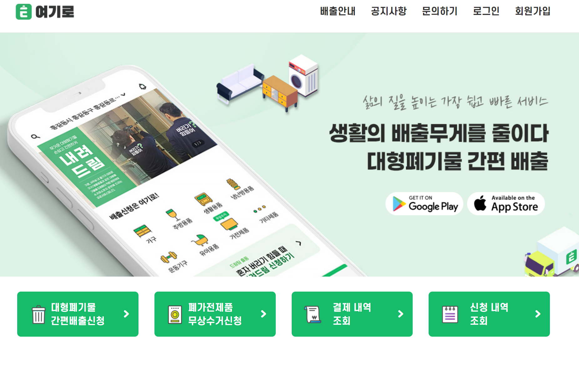 구리시청의 인터넷신고 페이지인 '여기로'에 접속하시게 되면, 간단하게 배출자 정보, 배출장소, 배출품목 등을 입력하시고 품목에 맞는 수수료를 결제하시면 모든 과정은 쉽게 끝납니다.