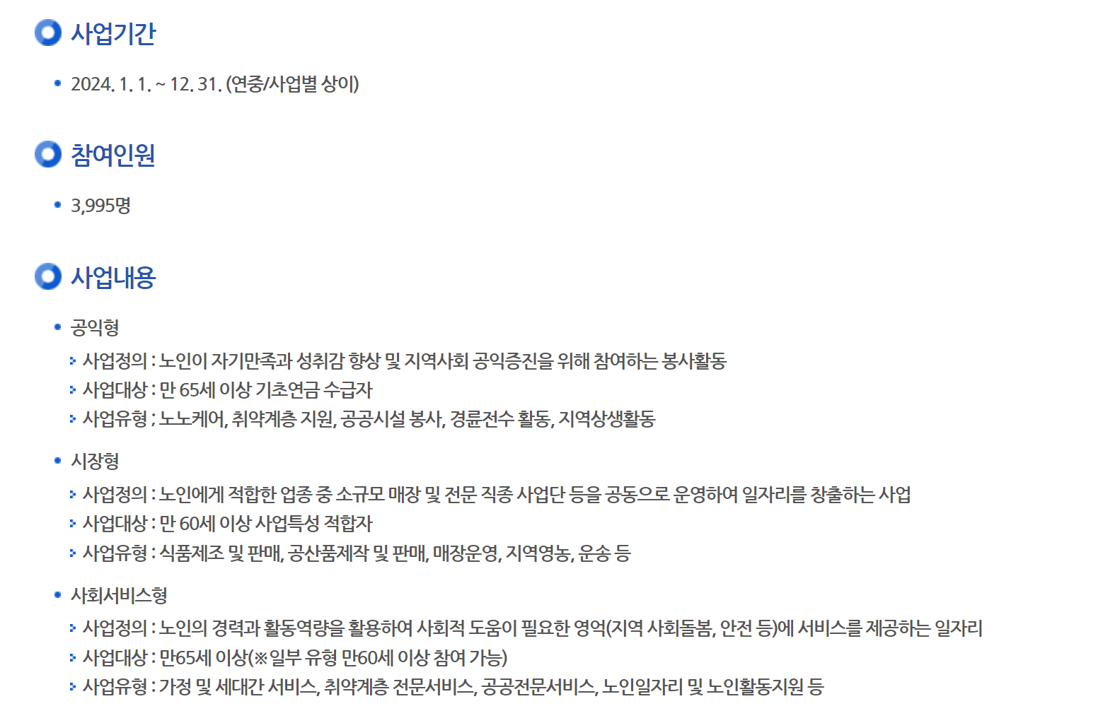 대표적으로 어르신 일자리 사업이 있는데요, 참여하기 위해선 신청기간,대상자 등의 조건이 있으니