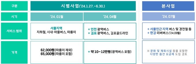 이 시범사업은 서울 지역 내 지하철, 서울시 면허를 가진 시내·마을버스,