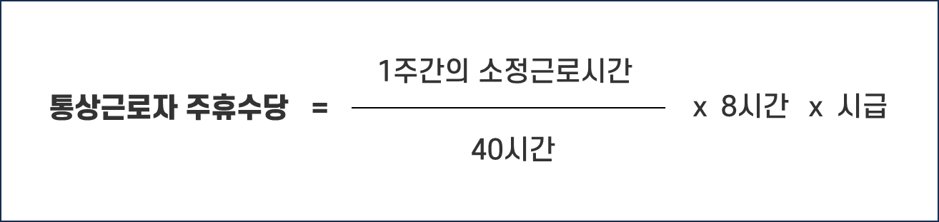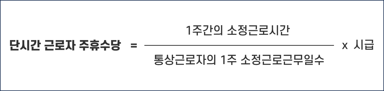 예를 들어, 하루 8시간씩, 주 5일 근무하는 경우에는 주휴수당은 하루 근무시간(8시간)과 시급을 곱한 금액이 됩니다.