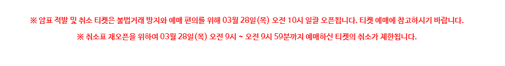 예매 실패하셨다면, 이러한 취소표를 노려보는 것도 방법입니다.