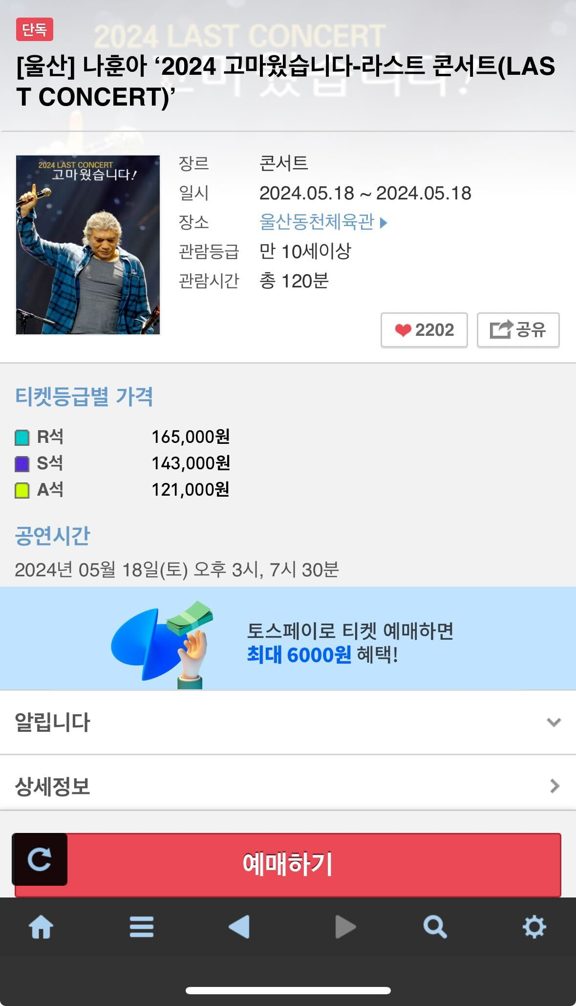 | 나훈아 콘서트 2024 창원 예매 성공하는 법(인천송도 4자리 티켓팅 인증) (0) | 2024.04.08 |