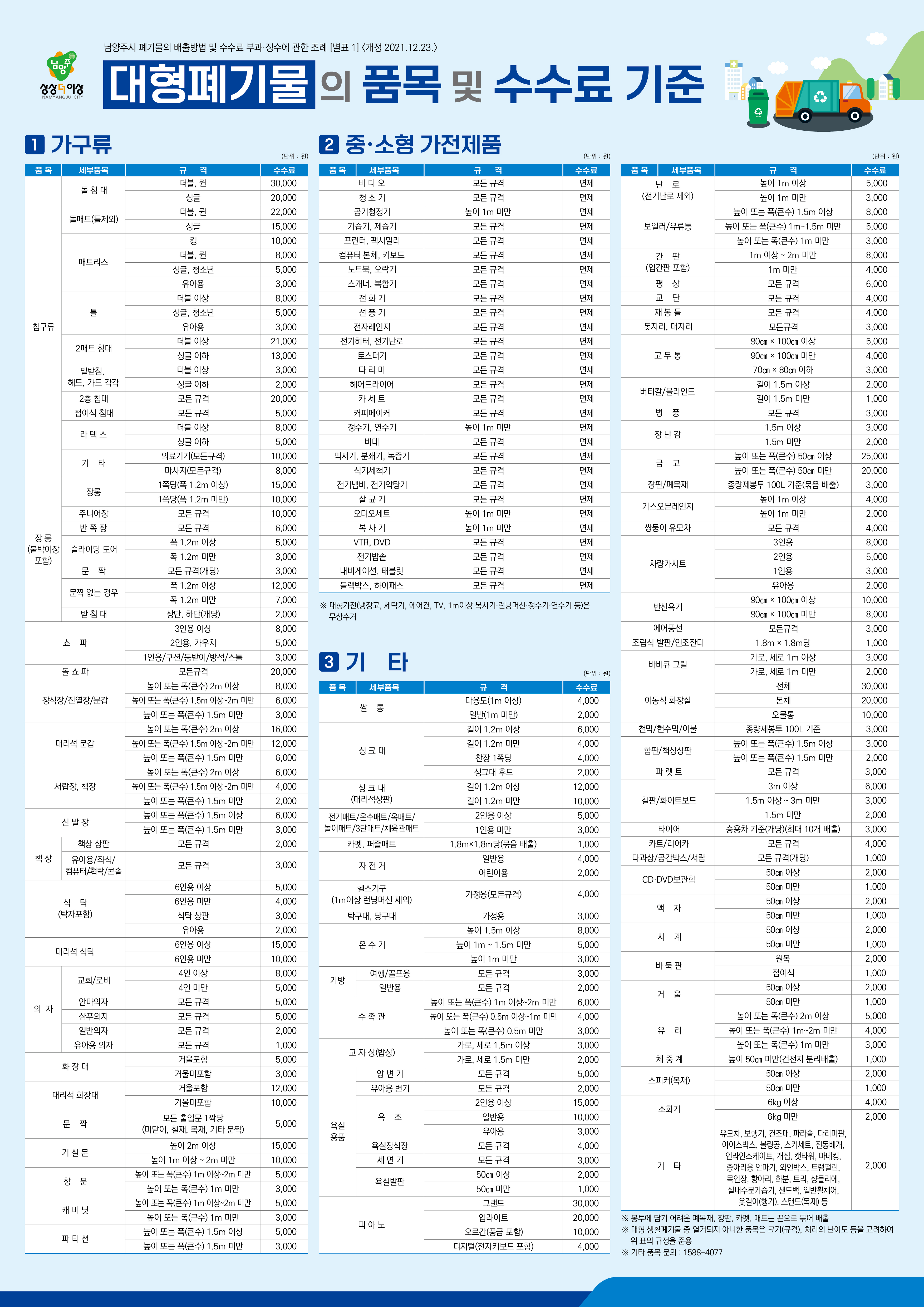 남양주 대형폐기물 배출 수수료는 아래와 같습니다.