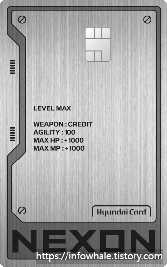 • 추가 정보: 현대카드가 넥슨과 함께 게임 유저를 위한 <넥슨 현대카드> 3종을 선보였으며, 모바일 게임 쿠폰으로 활용할 수 있는 넥슨 현대카드 포인트 적립혜택을 내세운 것이 특징입니다.
