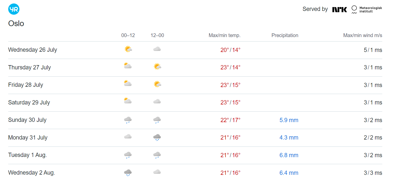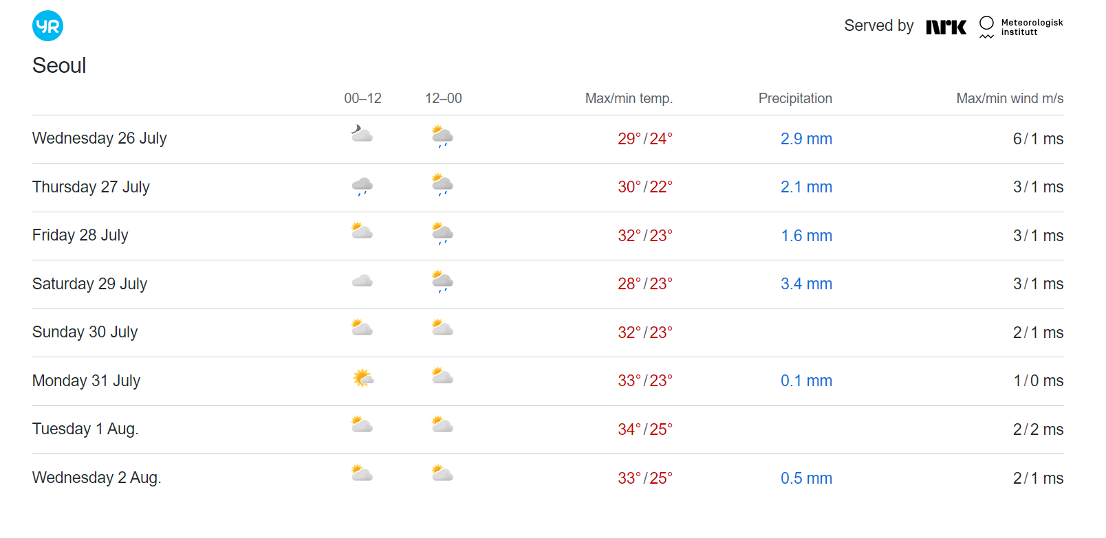 기상청의 예측이 계속 틀리자, 기상망명족들은 노르웨이 기상청 홈페이지에서 국내 날씨를 확인하고 있습니다.