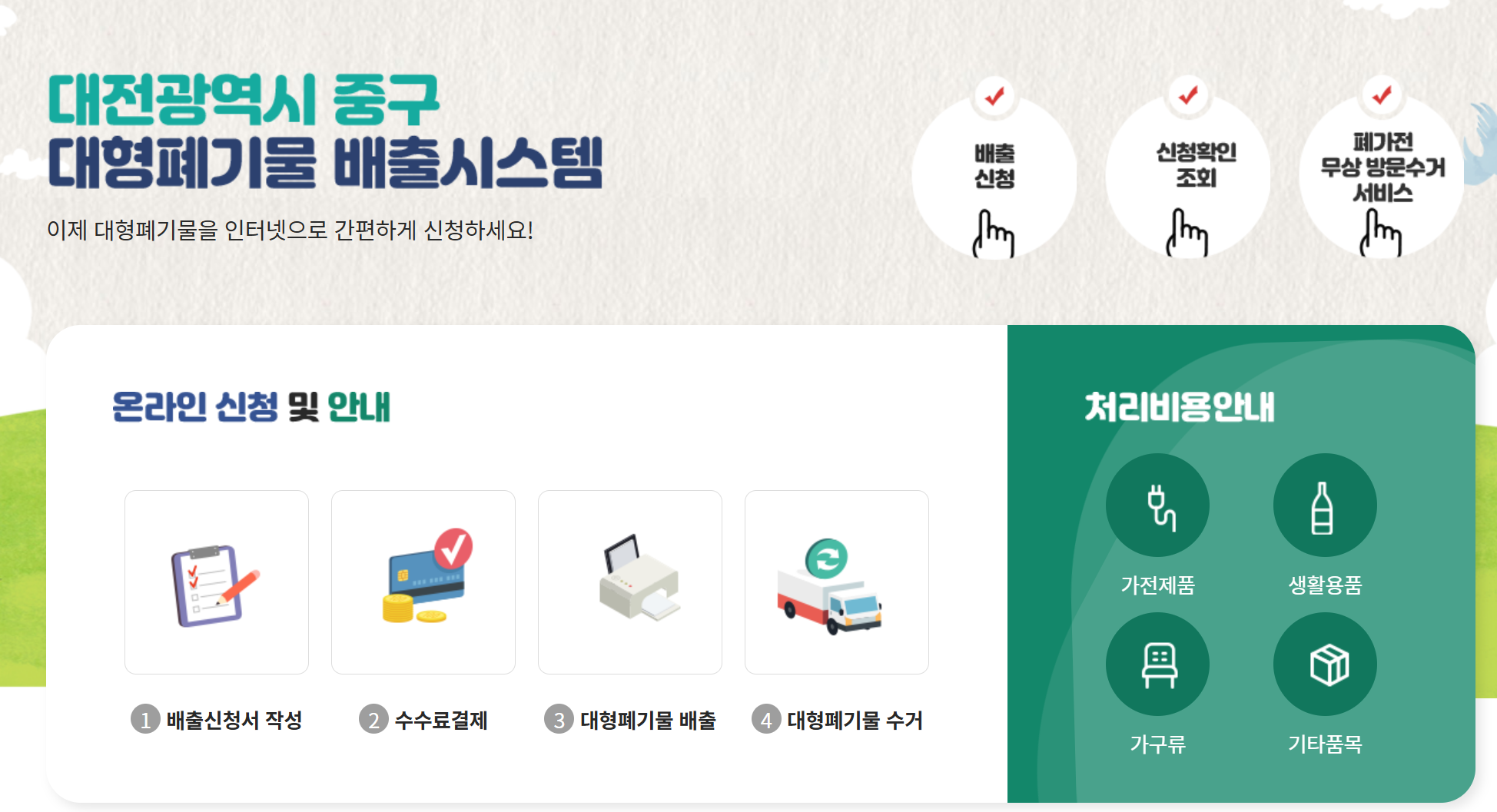 대전중구 대형폐기물 온라인 신고방법