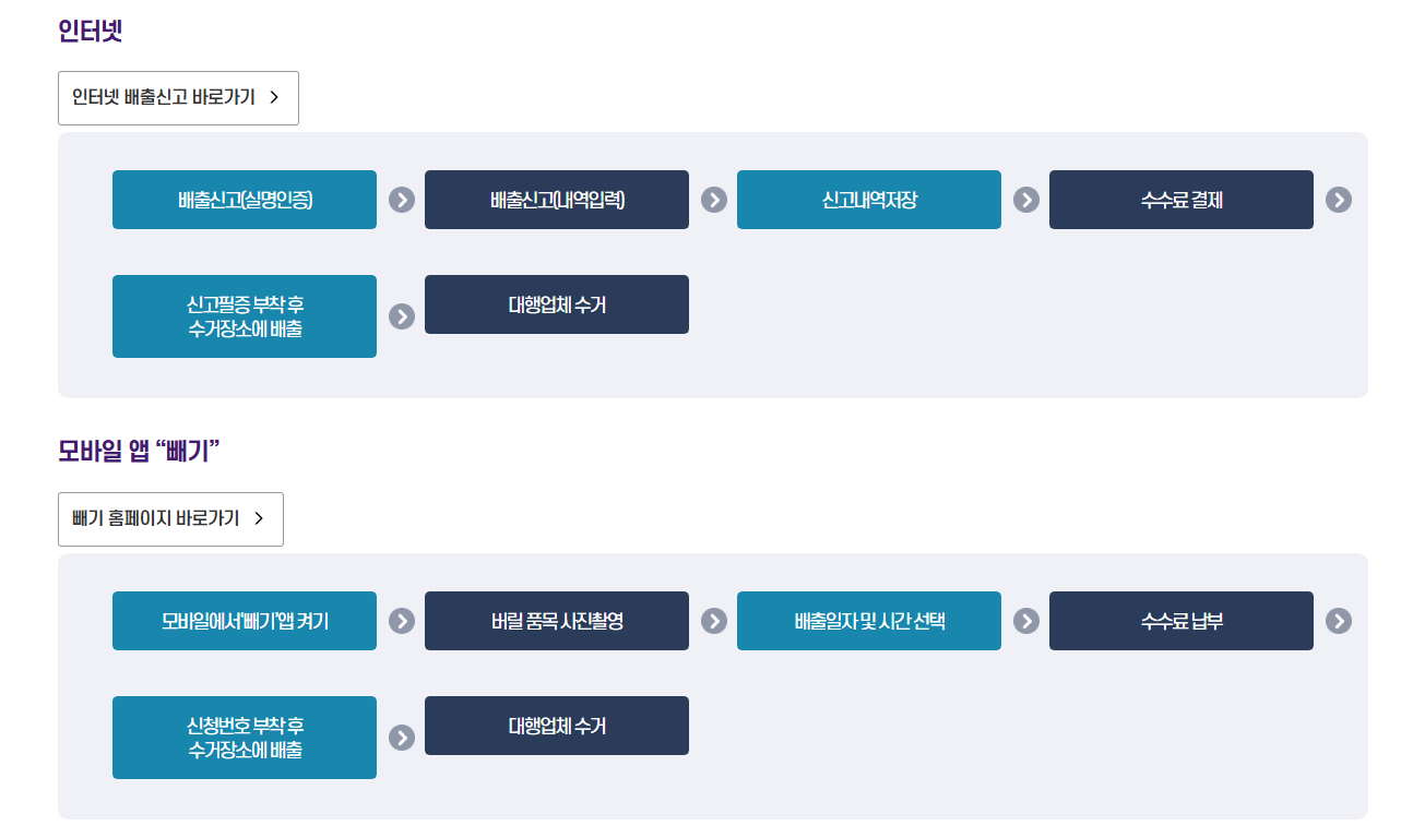 폐가구 처리 방법 고민많으셨죠? 일반적으로 폐가구는 대형폐기물은 인터넷 신고를 통해 간단하게 배출신고 가능합니다. 배출 신청자 정보와 배출 장소정보, 배출품목을 선택한 후 신청하면 스