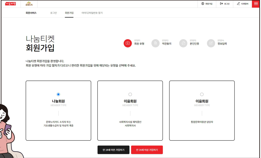 이들은 나눔티켓 홈페이지에서 회원가입을 통해 이 서비스를 이용할 수 있습니다. 특히, 기초생활수급자 및 차상위계층은 나눔회원으로 가입할 수 있으며, 월 3회 무료 티켓 및 50% 이상 할인티켓 예매가 가능합니다.