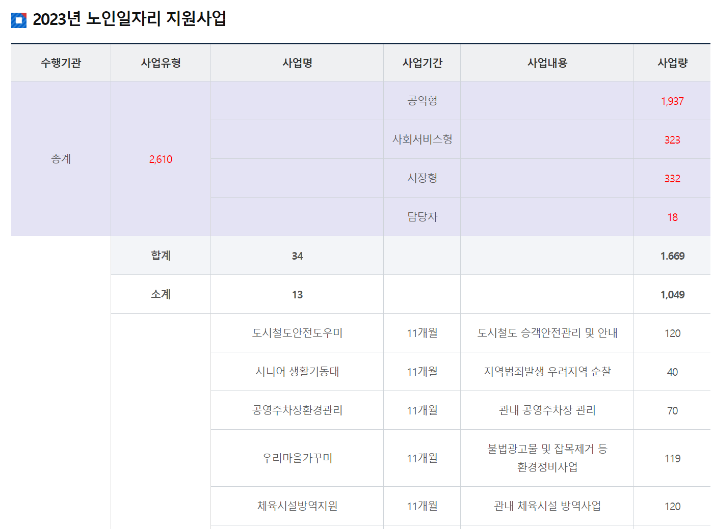※재능나눔활동,시니어인턴십,고령자친화기업은 별도 지침 참고