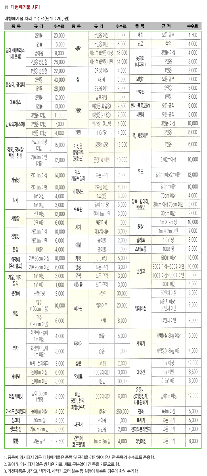 부산진구 대형폐기물 배출 수수료는 아래와 같습니다.