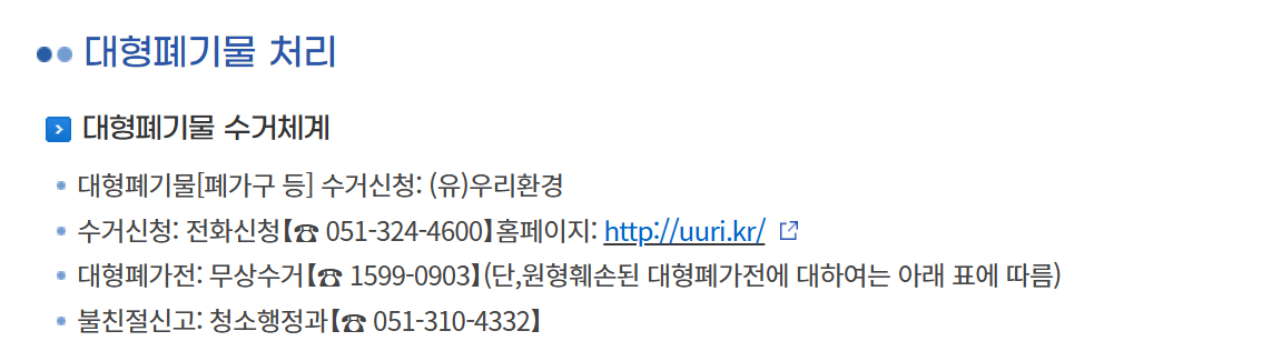 | 부산 수영구 대형폐기물,폐가전 배출 신고와 쓰레기 지원금,무상수거 꿀팁 (0) | 2024.11.06 |
