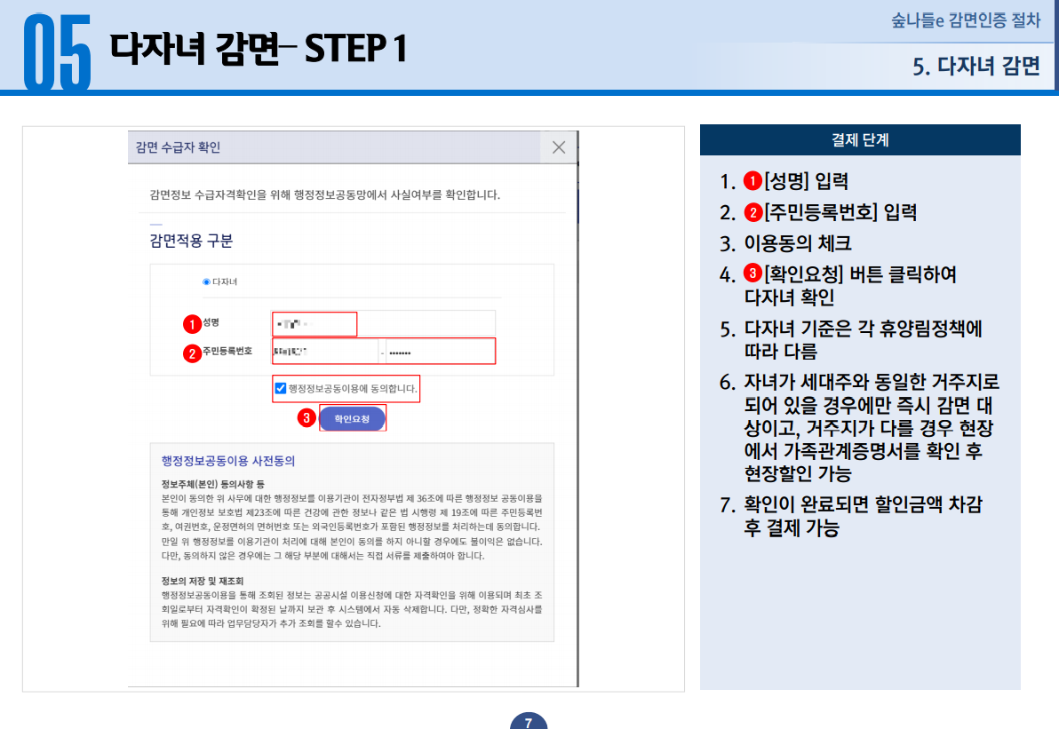이 정책은 다자녀를 둔 가족들이 휴양림을 이용할 때 혜택을 받을 수 있는 것을 목적으로 하고 있습니다.