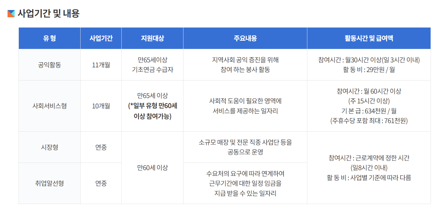 대표적으로 어르신 일자리 사업이 있는데요, 참여하기 위해선 신청기간,대상자 등의 조건이 있으니