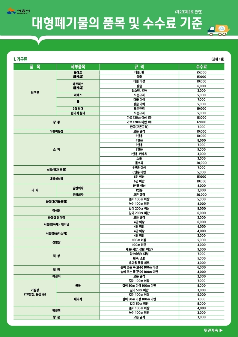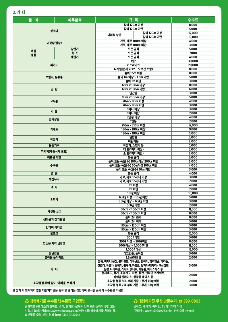 폐기물 종류 별 수수료