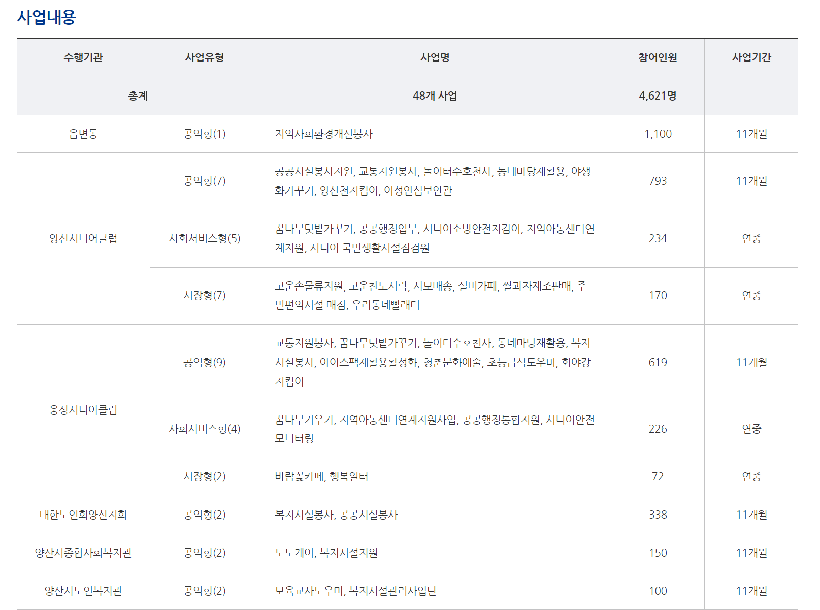 양산시청에서는 어르신들의 근로 창출과 개선을 위한 노력을 다방면으로 하고 있습니다.