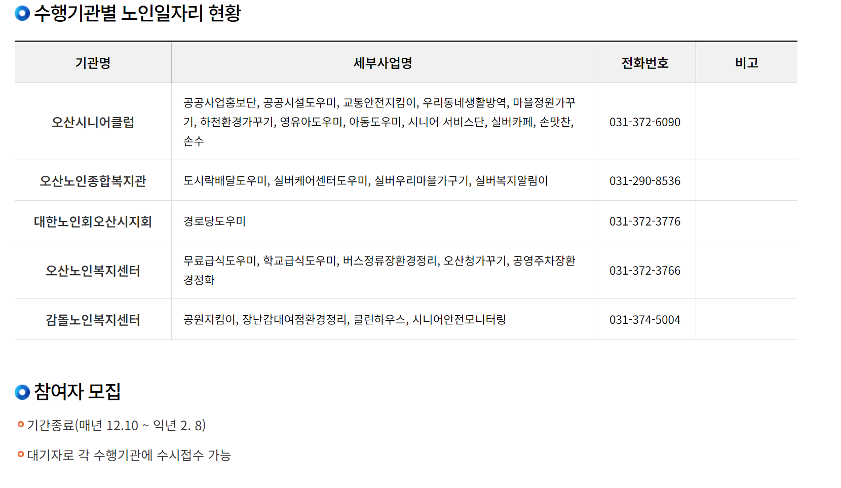 바로 지원가능한 오산시 노인일자리 구인구직 일자리 정보만 모아봤습니다.