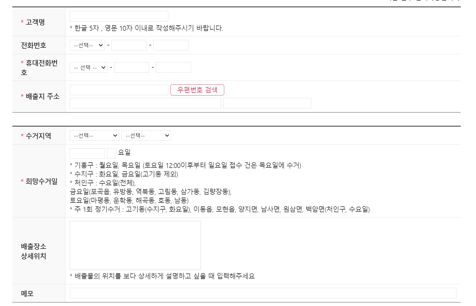 용인시청의 인터넷신고 페이지에 접속하시게 되면, 간단하게 배출자 정보, 배출장소, 배출품목 등을 입력하시고 품목에 맞는 수수료를 결제하시면 모든 과정은 쉽게 끝납니다.