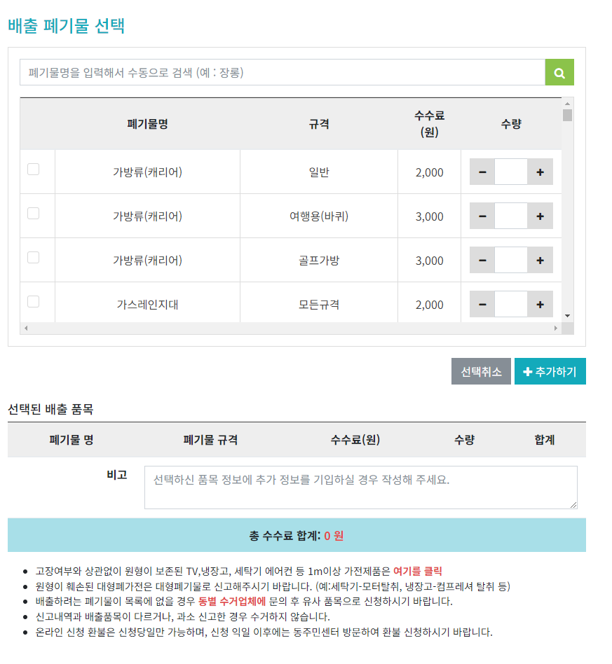 은평구청의 인터넷신고 페이지에 접속하시게 되면, 간단하게 배출자 정보, 배출장소, 배출품목 등을 입력하시고 품목에 맞는 수수료를 결제하시면 모든 과정은 쉽게 끝납니다.