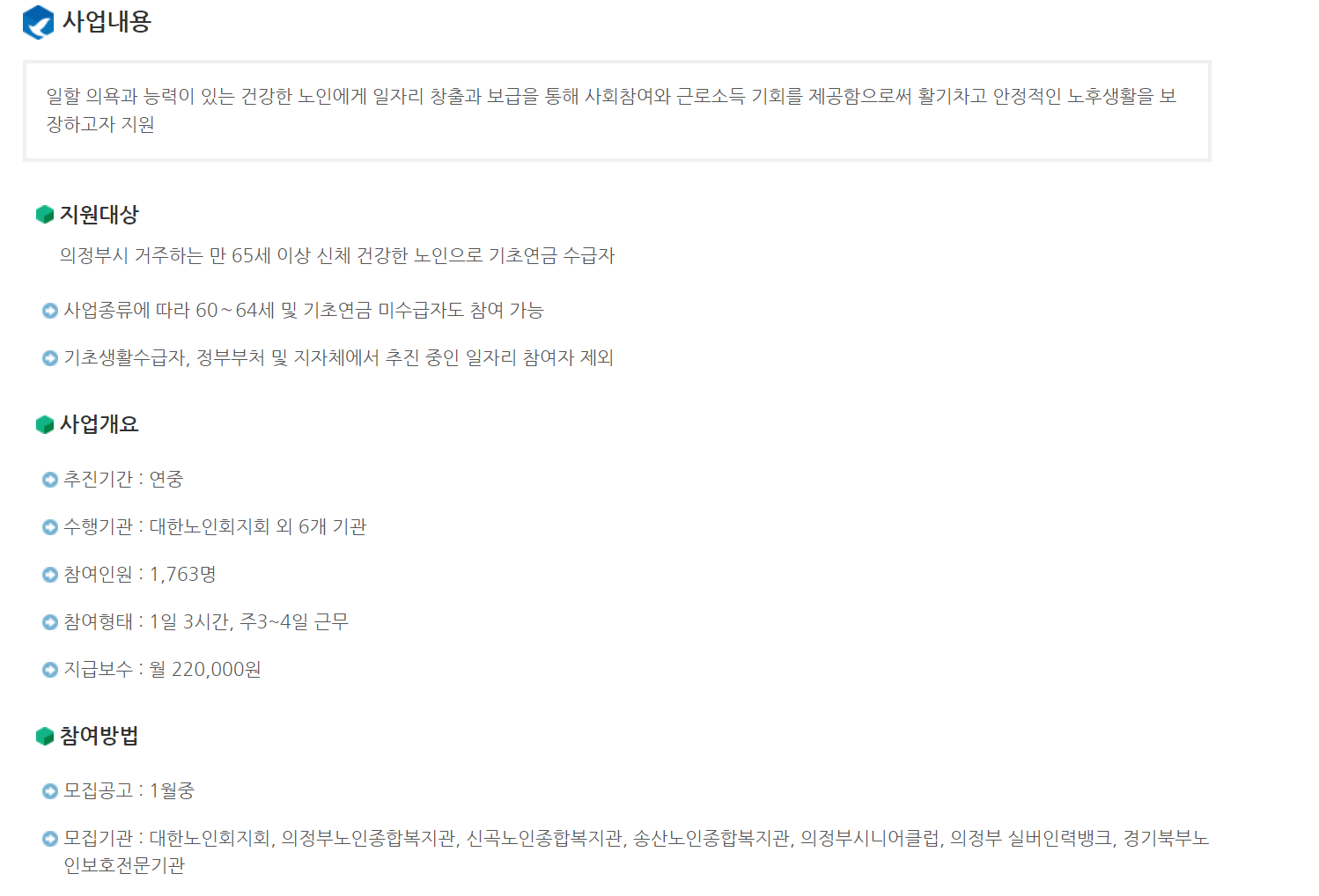 대표적으로 어르신 일자리 사업이 있는데요, 참여하기 위해선 신청기간,대상자 등의 조건이 있으니