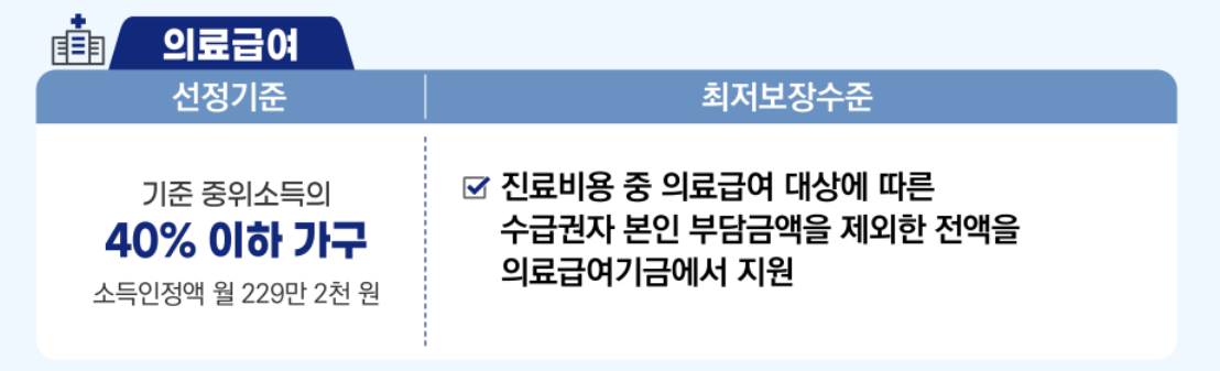 의료급여는 중위 40% 이하 분들에게 해당 된다고 보시면 됩니다.