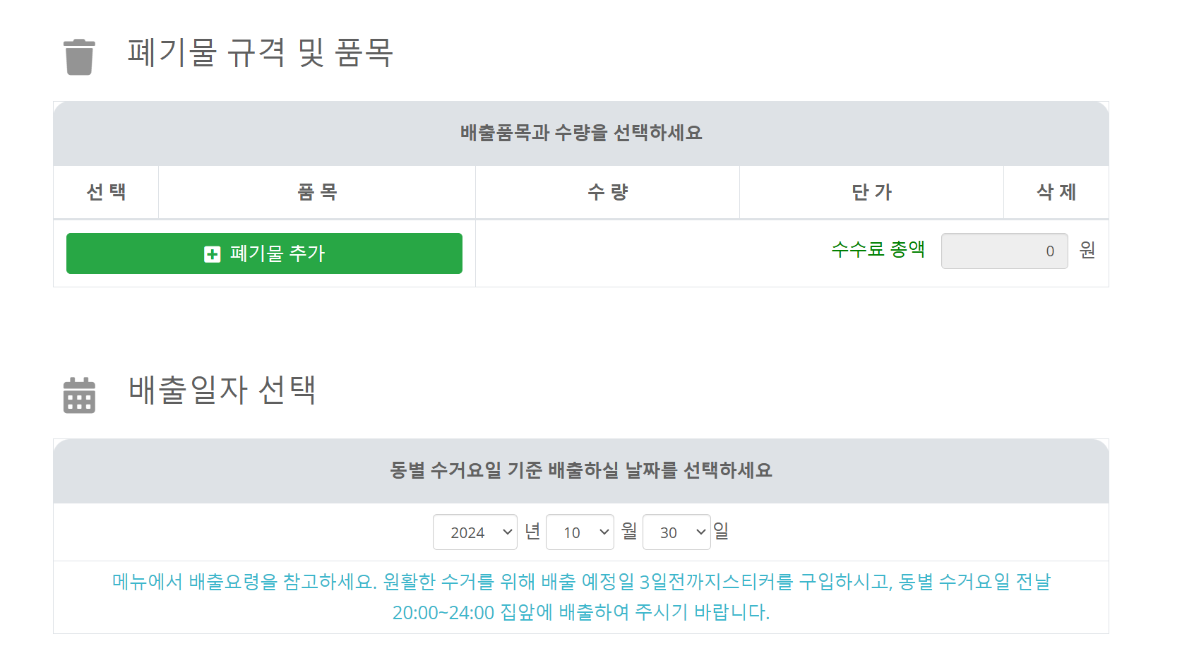 대형폐기물 배출 수수료