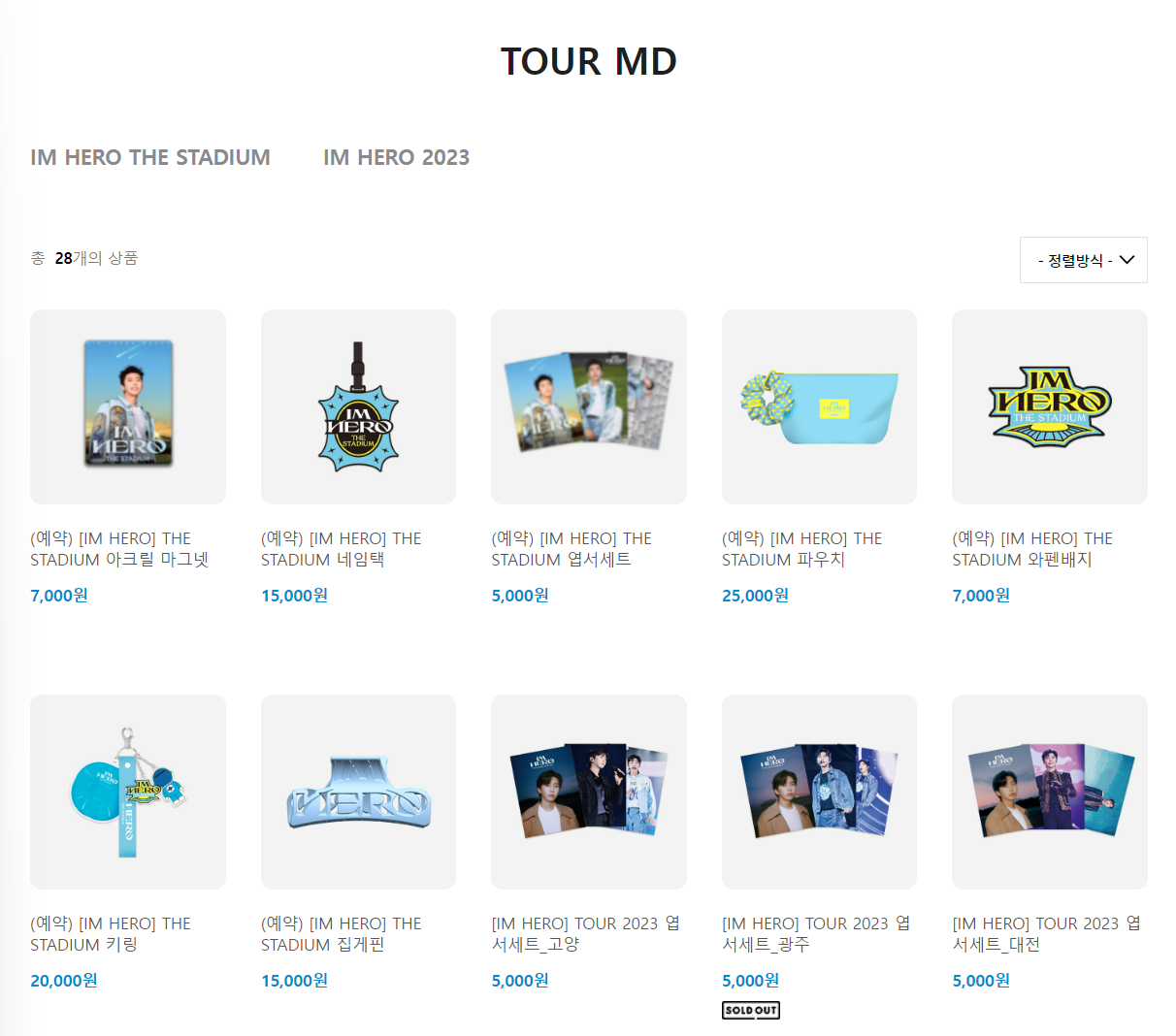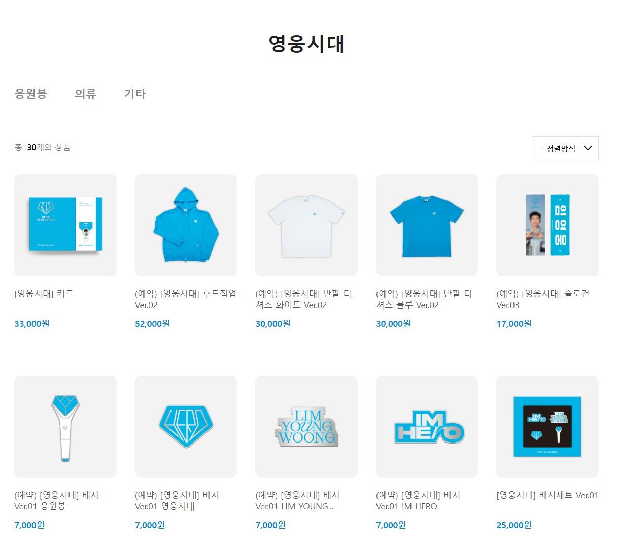 팬클럽인 영웅시대의 응원봉, 의류, 기타 굿즈를 포함하고 있으며, 콘서트 투어 제품, 기타 시즌 그리팅까지 온라인 판매처에서 만나보실 수 있습니다.
