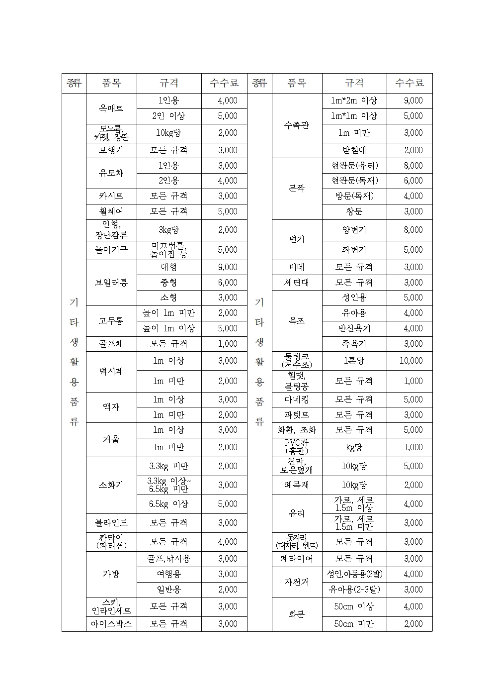 | 생활폐기물 | 종량제봉투에 담아 내집앞, 내상가앞(공동주택 등은 지정된 장소) 배출 | 음식물쓰레기, 재활용품 혼합 배출 금지 | |