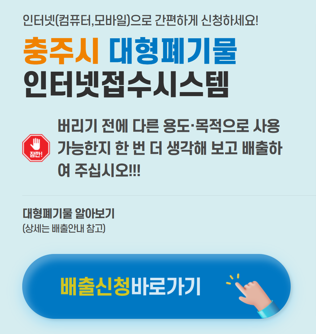 충주시 대형폐기물 온라인 신고방법은 생각보다 매우 간단합니다. 우선 지역구 홈페이지로 접속하신 후에 대형폐기물을 검색하시면 바로 신청할 수 있는 메뉴가 나옵니다. 아래에서 조금 더 알아보겠습니다.