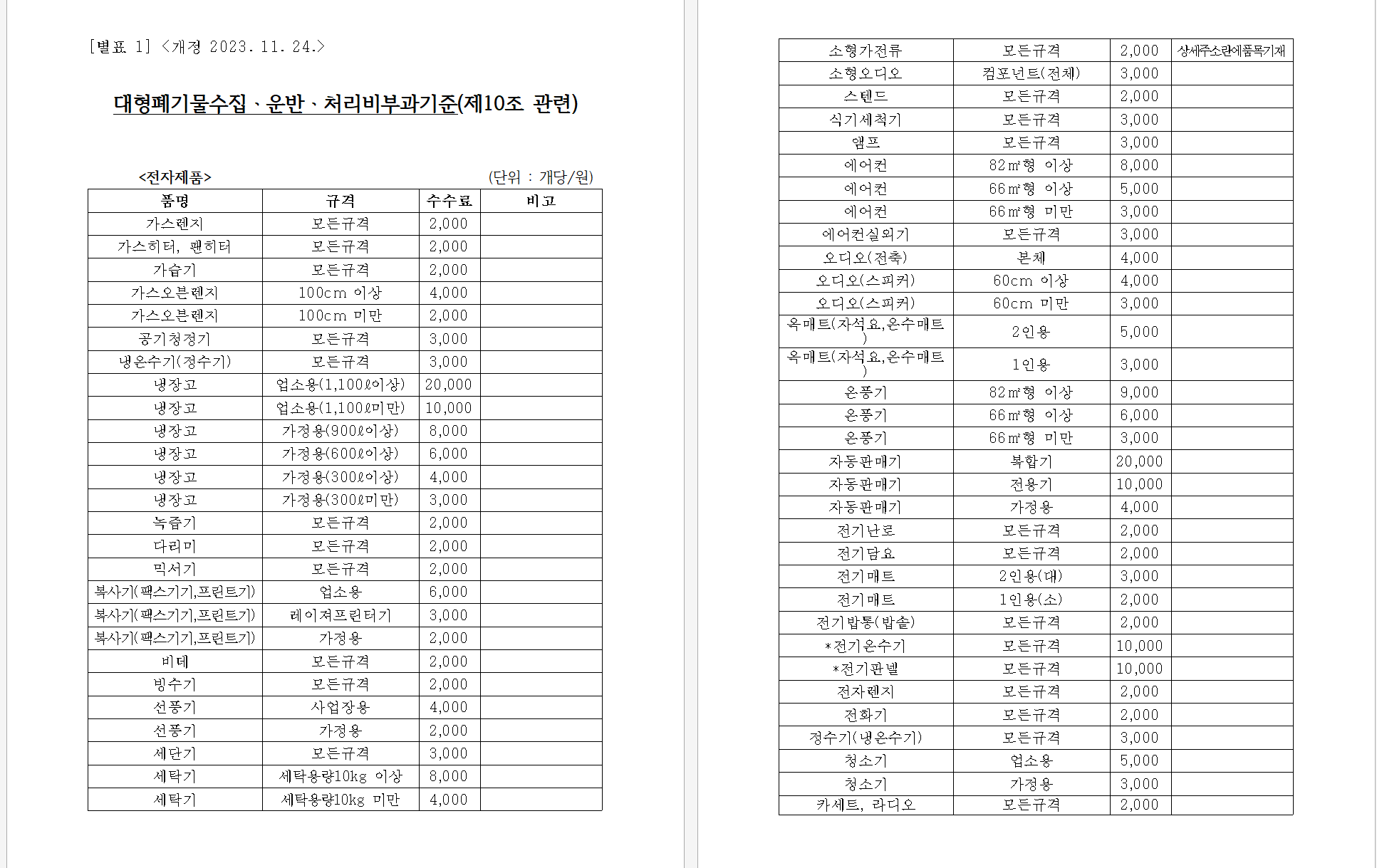 | 청주시 대형폐기물,폐가전 배출 신고와 쓰레기 지원금,무상수거 꿀팁 (0) | 2024.11.05 |