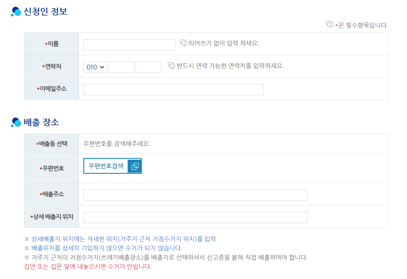 폐가구 처리 방법 고민많으셨죠? 일반적으로 폐가구는 대형폐기물은 인터넷 신고를 통해 간단하게 배출신고 가능합니다. 배출 신청자 정보와 배출 장소정보, 배출품목을 선택한 후 신청하면 스