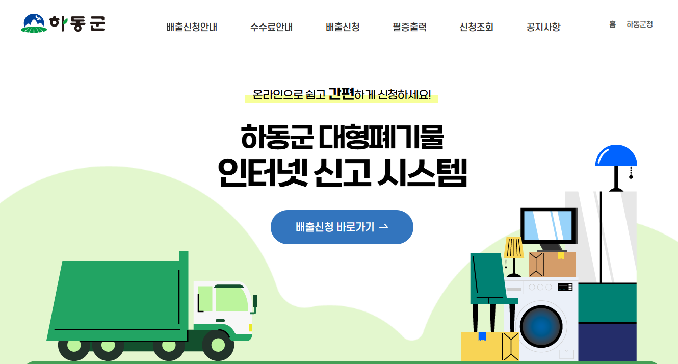 하동군 대형폐기물 온라인 신고방법