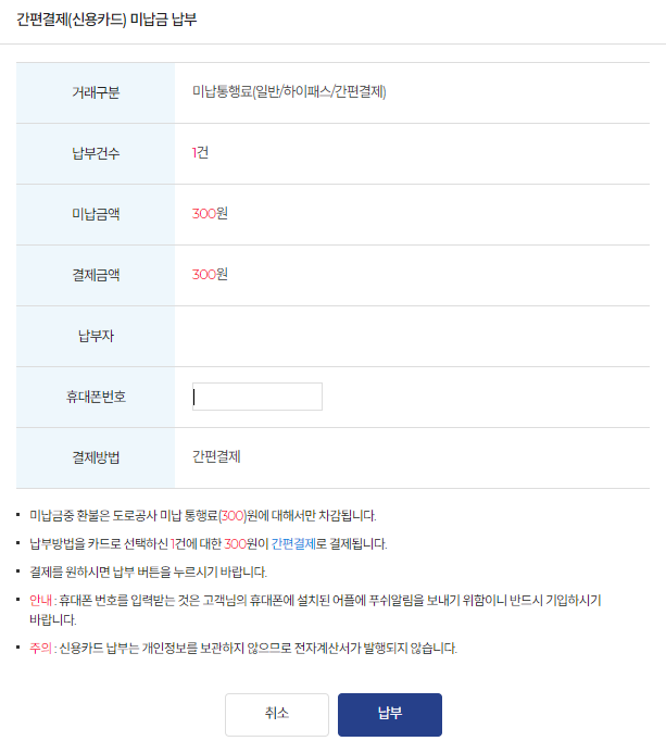 미납통행료 납부방법