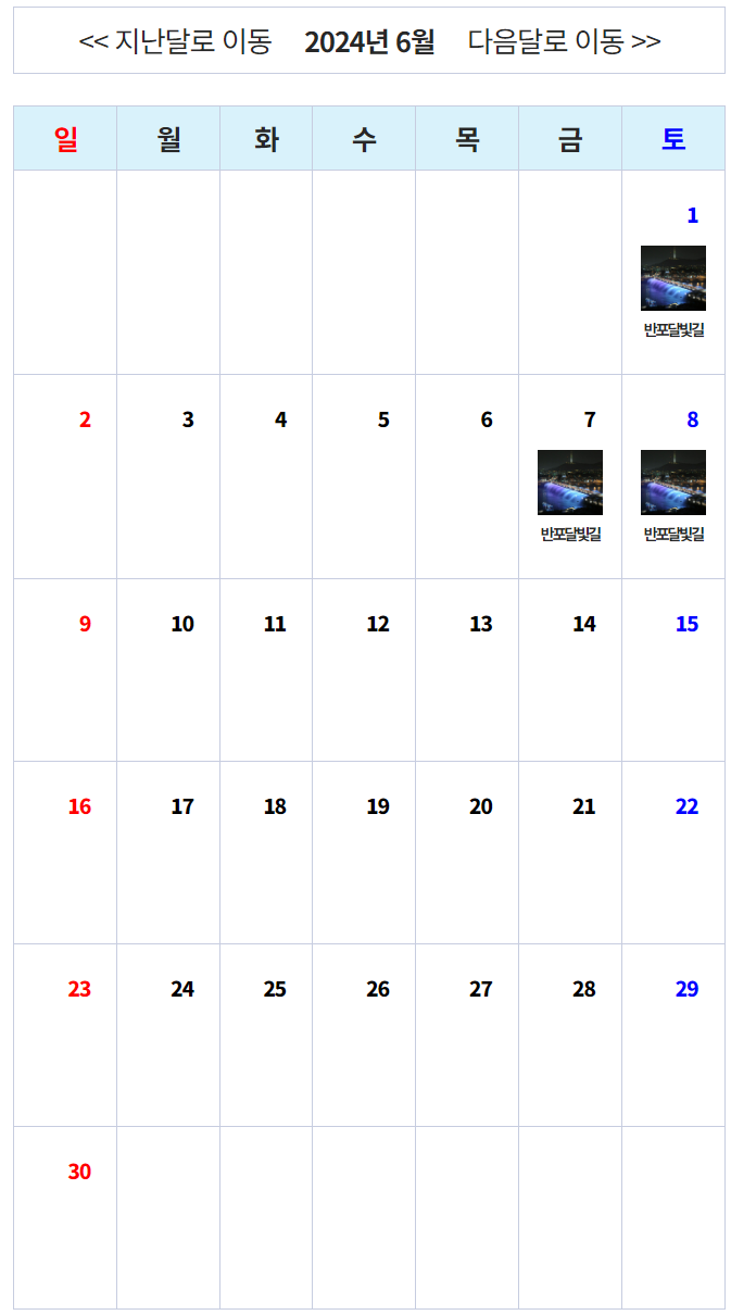 | 운영코스 | - 반포달빛길 (서래섬 - 세빛섬 - 달빛무지개분수) - 여의별빛길 (여의도 공원 - 마포대교 - 물빛무대) * 예정 |